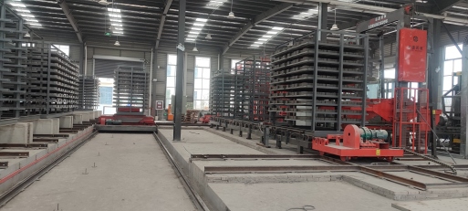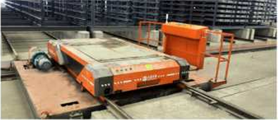 本生產線預制成型的濕磚由升板機將其提升放置在鐵架之上每一層磚板相互隔離,放滿之后可用又車將整個鐵架轉移至養護區,也可配套新能源智能子母車將其轉運至養護窯內進行養護。